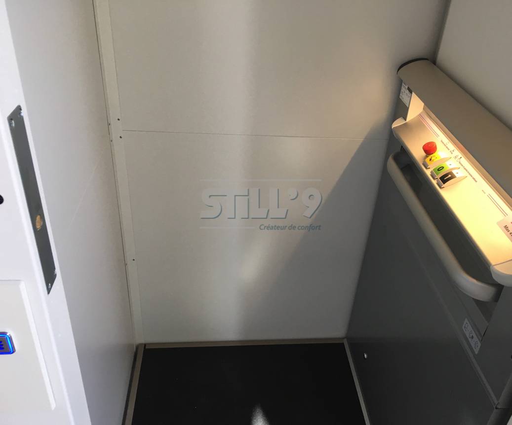 Cette plateforme verticale intérieure dessert deux niveaux, elle est équipée de portes battantes à ouverture manuelles.